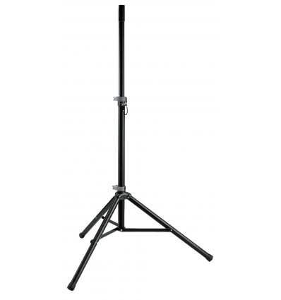An easy-to-carry speaker stand made of high quality aluminum. Fiberglass-reinforced fittings and an additional safety pin ensure stable support for the speakers. The height and feet adjust by an easy-to-use clamping lever.
