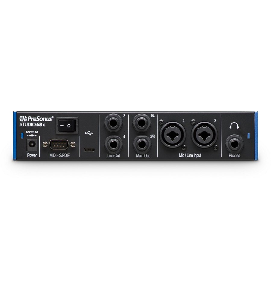 Idealan za DJ-e, mobilne glazbenike i elektronske glazbenike koji žele izvrsnu kvalitetu zvuka u kompaktnom, prijenosnom obliku. Studio 68c opremljen je sa 4 ulaza, 4 izlaza, 192 kHz konverterom, mikrofonskim, linijskim i instrumentalnim ulazima i MIDI I/O. Studio 68c dolazi s nagrađivanim PreSonusovim glazbenim programom Studio One® Artist za MacOS® i Windows® te uključuje USB-C na USB-C i USB-C na USB-A kabele.