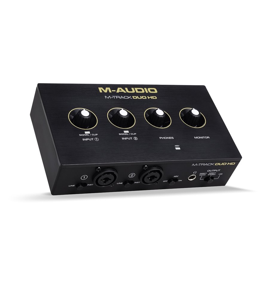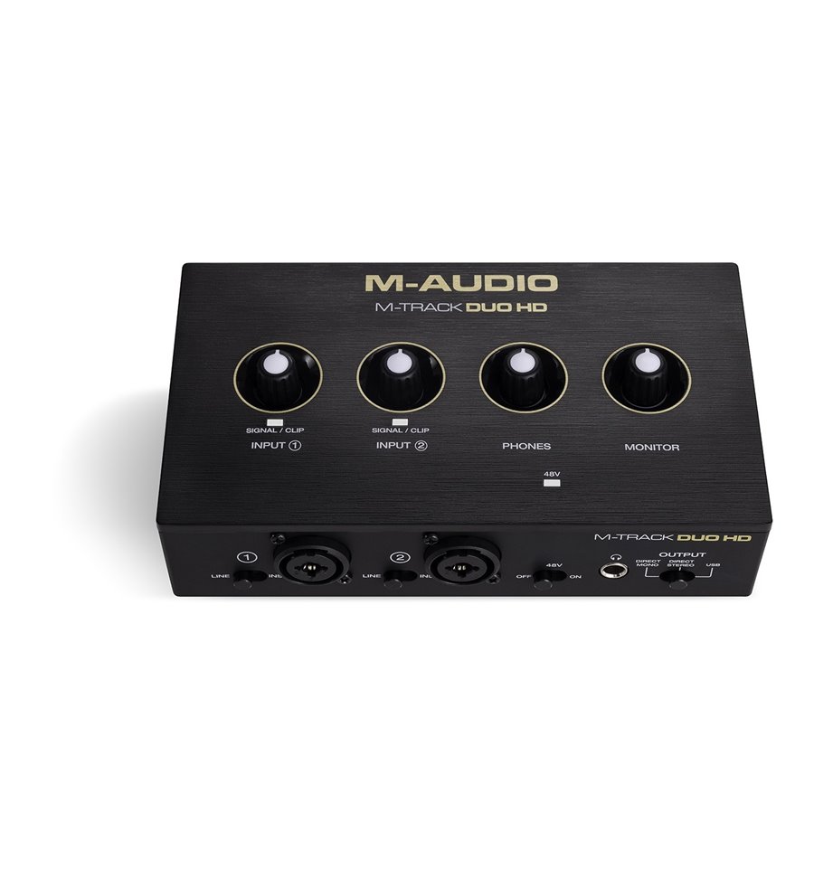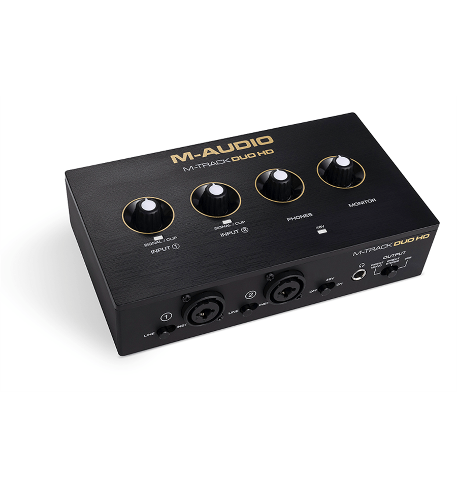 M-Audio M-Track Duo HD je kompaktno USB audio sučelje koje pruža studijsku kvalitetu snimanja u bilo kojem okruženju. S dva kombinirana XLR/TRS ulaza, Crystal™ preampovima i 24-bitnom/48 kHz rezolucijom, osigurava čist i detaljan zvuk za vokale, instrumente i podcast. Uz direct monitoring, phantom napajanje i čvrstu metalnu konstrukciju, M-Track Duo HD je idealan alat za producente, glazbenike i kreatore koji žele profesionalne rezultate kod kuće ili u pokretu.