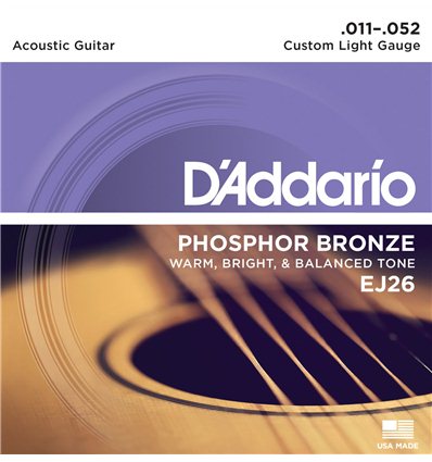 D'Addario je prvi koristio fosfornu broncu u žicama za akustičnu gitaru davne 1974. godine. Danas se fosforna bronca svira diljem svijeta i smatra se standardom za akustične žice, zahvaljujući svojoj prekrasnoj zvučnoj ravnoteži i tonskoj toplini. Naše pionirske žice za akustičnu gitaru od fosforne bronce precizno su namotane žicom od fosforne bronce preko jezgre od visokougljičnog čelika, pružajući tonsku svestranost pogodnu za sve akustične stilove i glazbene žanrove. Ove žice Custom Light 11-52 imaju nešto veći volumen i projekciju od Extra Light, a istovremeno ih je lako svirati.